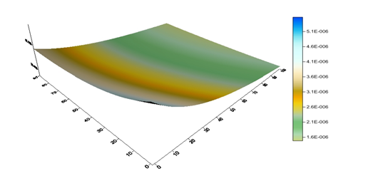 從采空區(qū)中心壓實(shí)區(qū)域到靠近采空區(qū)邊界的碎脹系數(shù)取 值為1.1~16。將對(duì)采空區(qū)不同地點(diǎn)所采煤樣的研究得出的粒徑和孔隙率數(shù)據(jù)帶入公式,再將所求解與煤樣所在采空區(qū)的位置進(jìn)行繪制采空區(qū)煤體的滲透率分布圖從采空區(qū)煤體滲透率的分布圖可以看出滲透率變化比較規(guī)律,靠近工作面比較大,遠(yuǎn)離工作面比較小,在工作面的的傾斜方向變化不大?! ?/span>