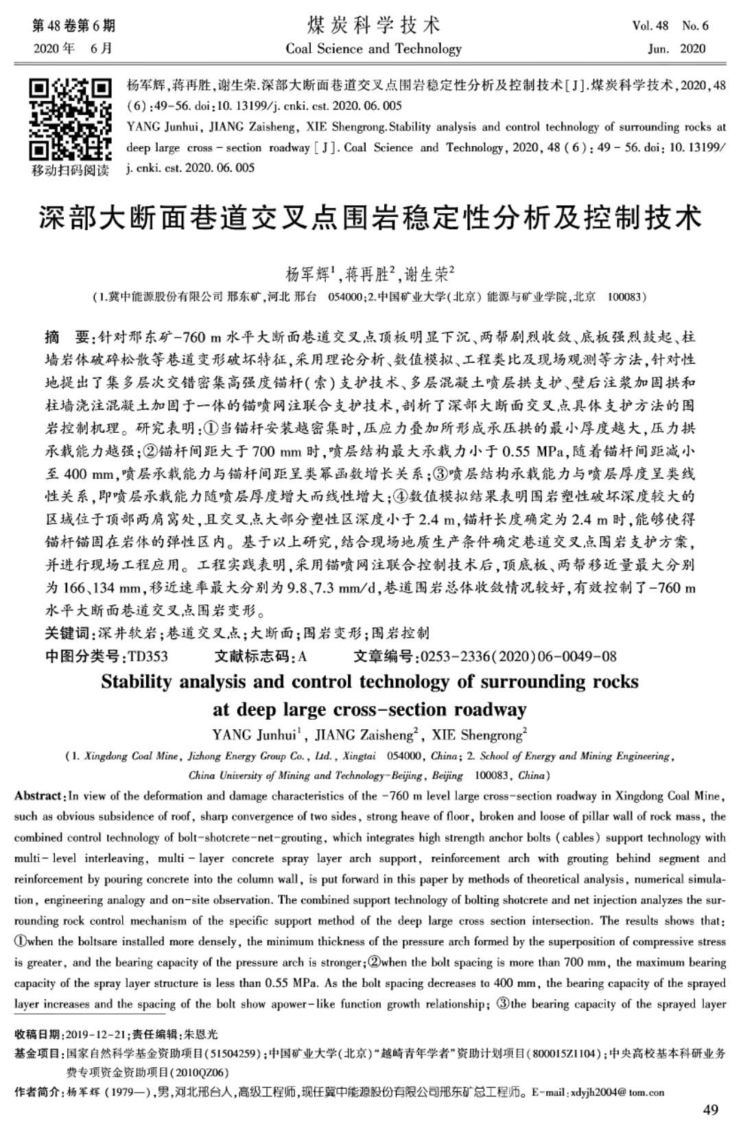 深部大斷面巷道交叉點圍巖穩(wěn)定性分析及控制技術