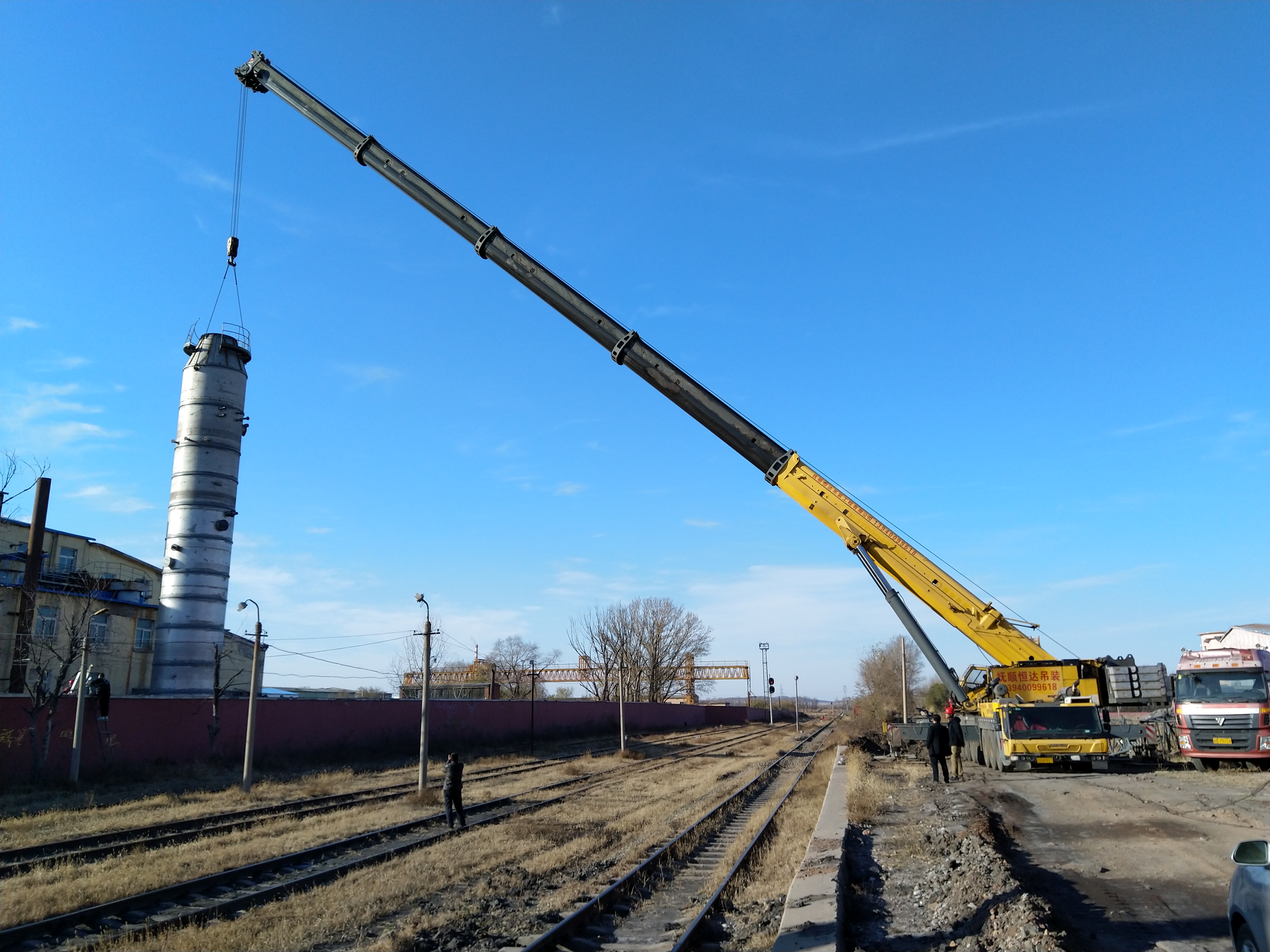 后勤服務(wù)保障中心克服施工困難,采用650噸吊車進行長距離吊裝。