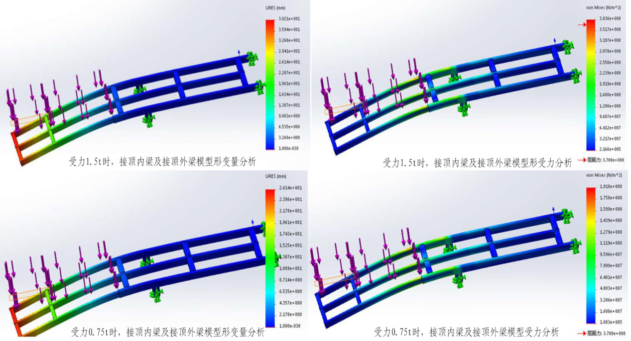 要在假定鉸接點(diǎn)穩(wěn)固不破壞的前提下,接頂內(nèi)梁完全伸出的狀態(tài)下,對(duì)受力1.5t和0.75t二種情況進(jìn)行分析:
