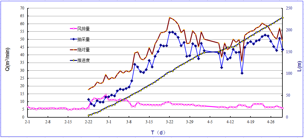 圖4 ?千米定向鉆孔抽采效果隨時(shí)間變化曲線圖