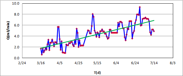 圖3??斜交鉆孔抽采量隨推進(jìn)時(shí)間變化曲線