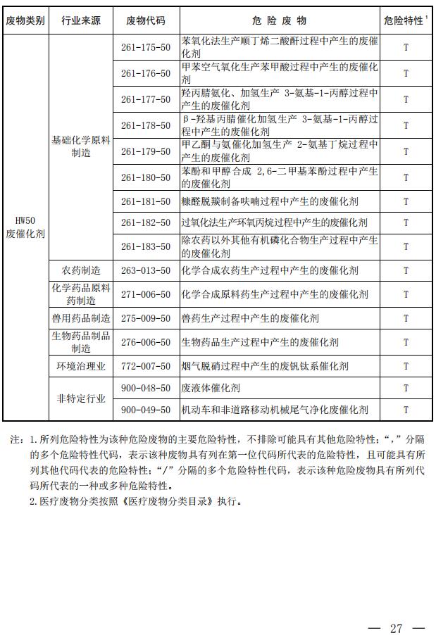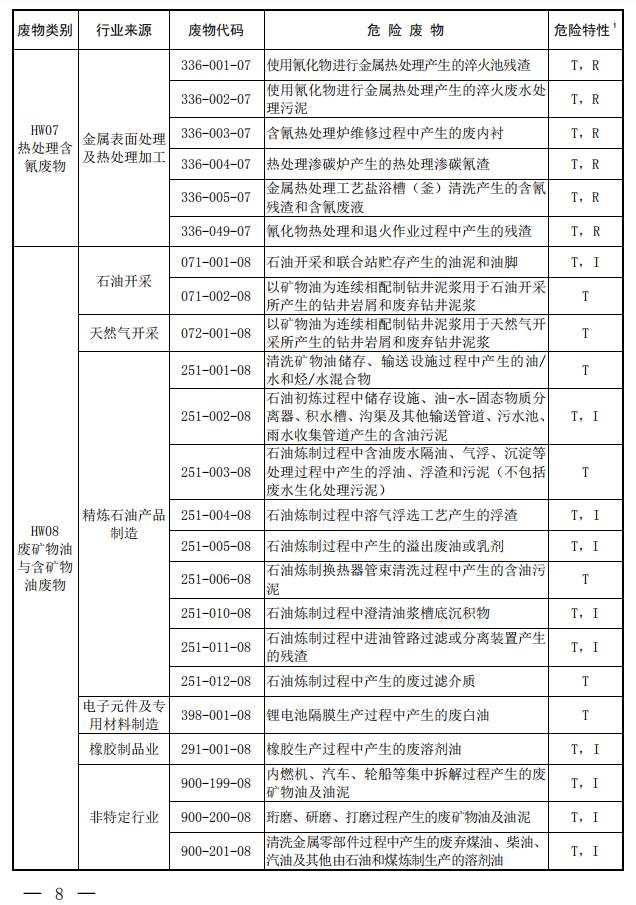 第八條??本名錄自2021年1月1日起施行。原環(huán)境保護部、國家發(fā)展和改革委員會、公安部發(fā)布的《國家危險廢物名錄》(環(huán)境保護部令第39號)同時廢止。