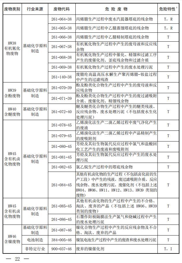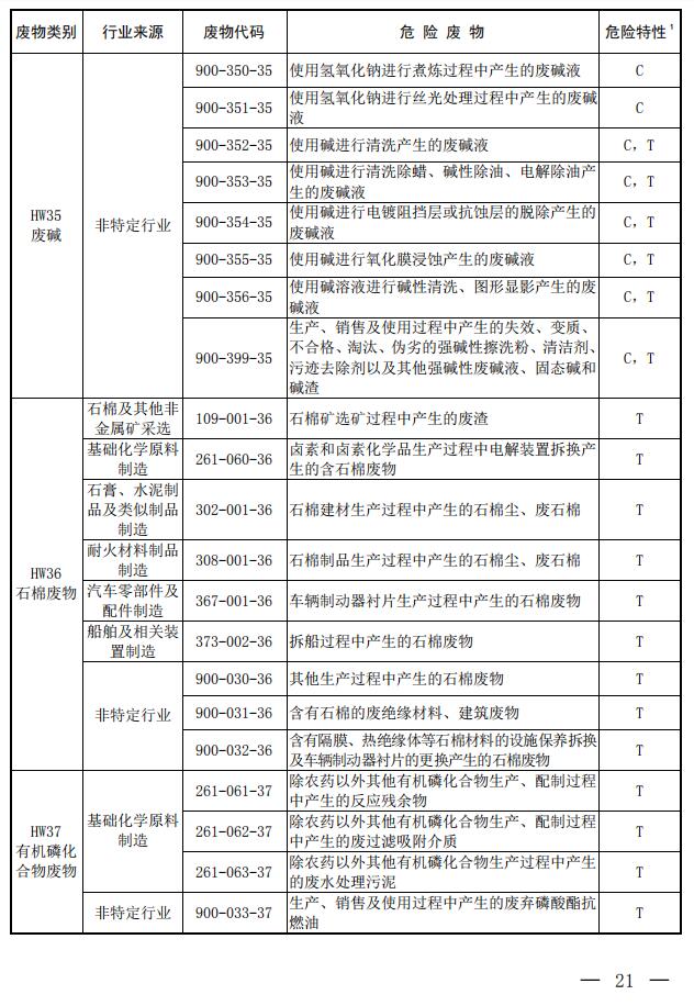 國家危險廢物名錄(2021年版)