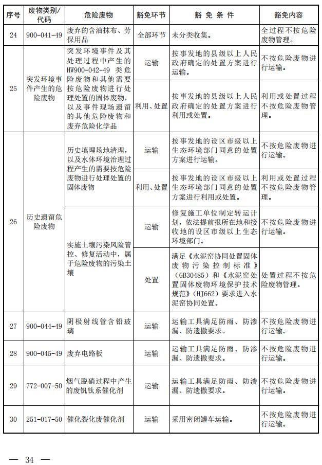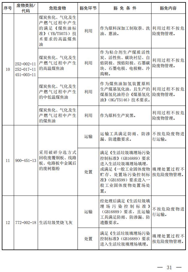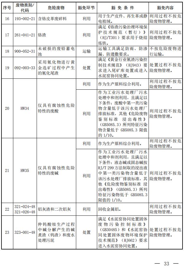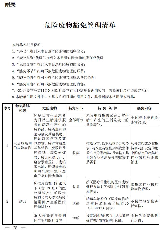 第三條? 列入本名錄附錄《危險廢物豁免管理清單》中的危險廢物,在所列的豁免環(huán)節(jié),且滿足相應(yīng)的豁免條件時,可以按照豁免內(nèi)容的規(guī)定實行豁免管理。