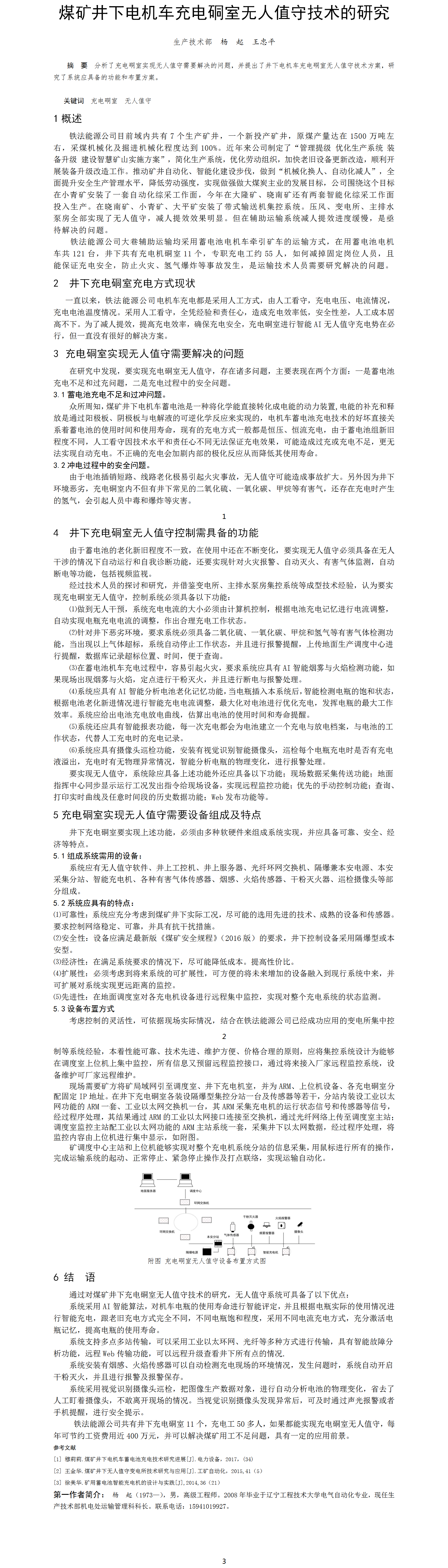 公司等級獎論文---煤礦井下電機車充電硐室無人值守技術的研究