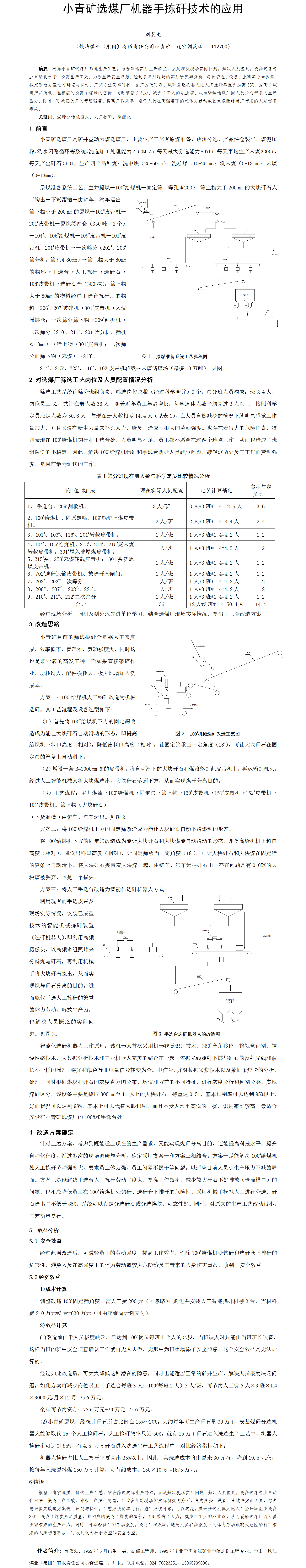 第47屆等級獎?wù)撐?--小青礦選煤廠機(jī)器手揀矸技術(shù)的應(yīng)用
