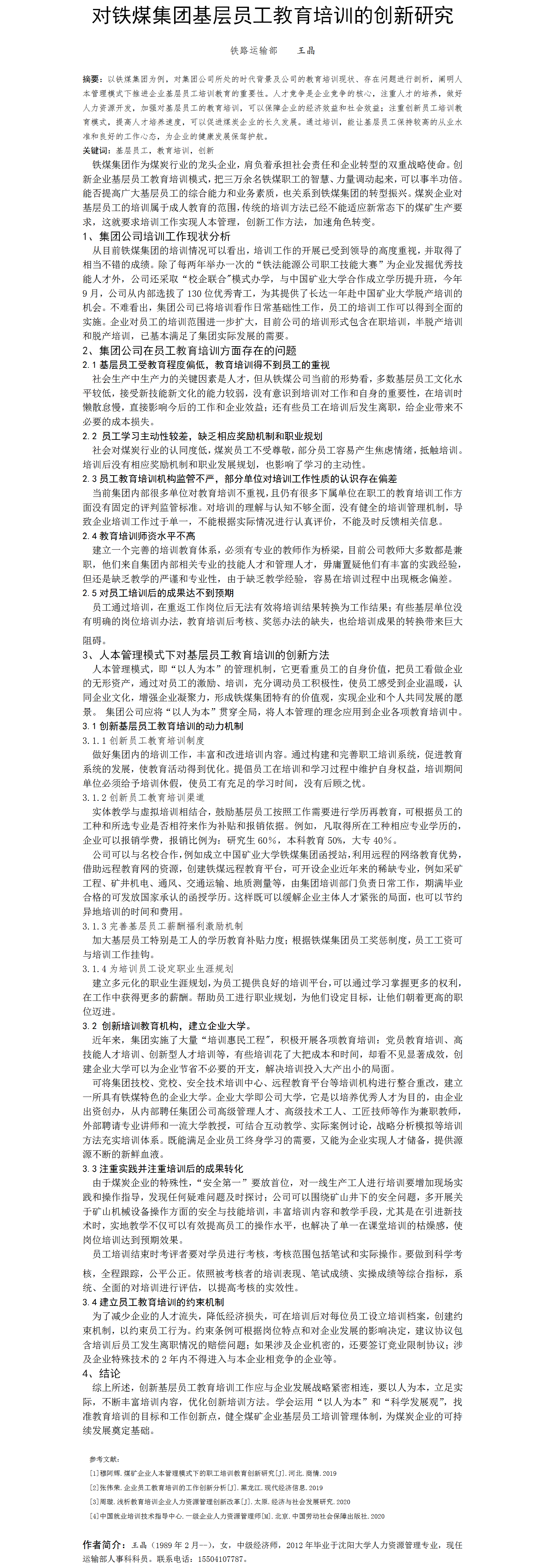 第48屆等級獎論文---對鐵煤集團基層員工教育培訓的創(chuàng)新研究