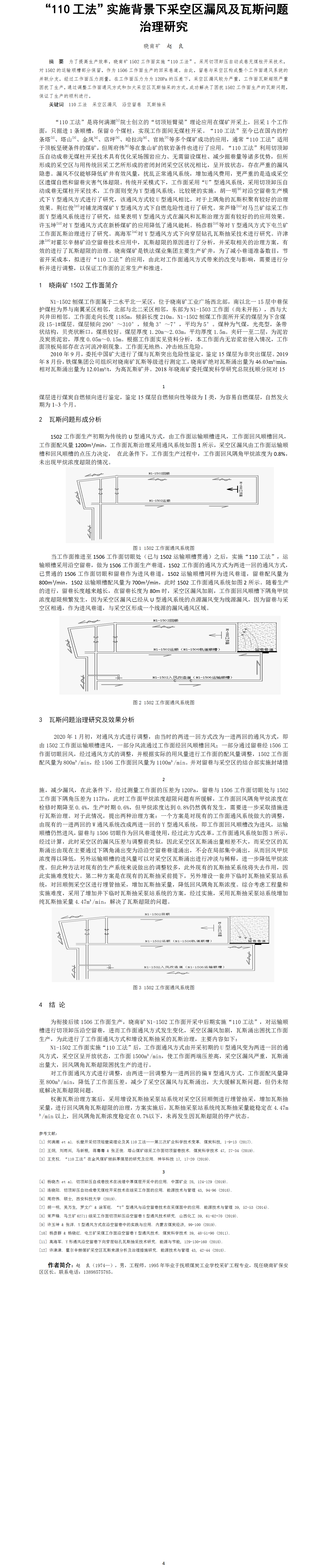 第49屆等級獎(jiǎng)?wù)撐?--“110工法”實(shí)施背景下采空區(qū)漏風(fēng)及瓦斯問題治理研究