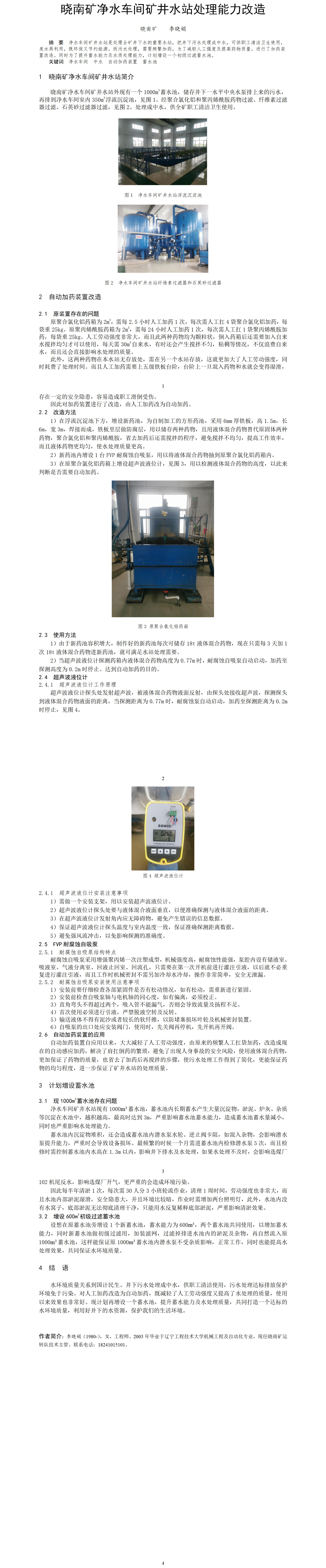 第51屆等級(jí)獎(jiǎng)?wù)撐?--曉南礦凈水車間礦井水站處理能力改造