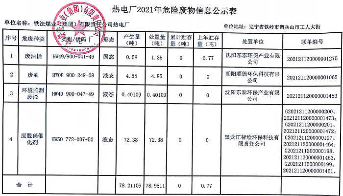 熱電廠2021年危險(xiǎn)廢物信息公示