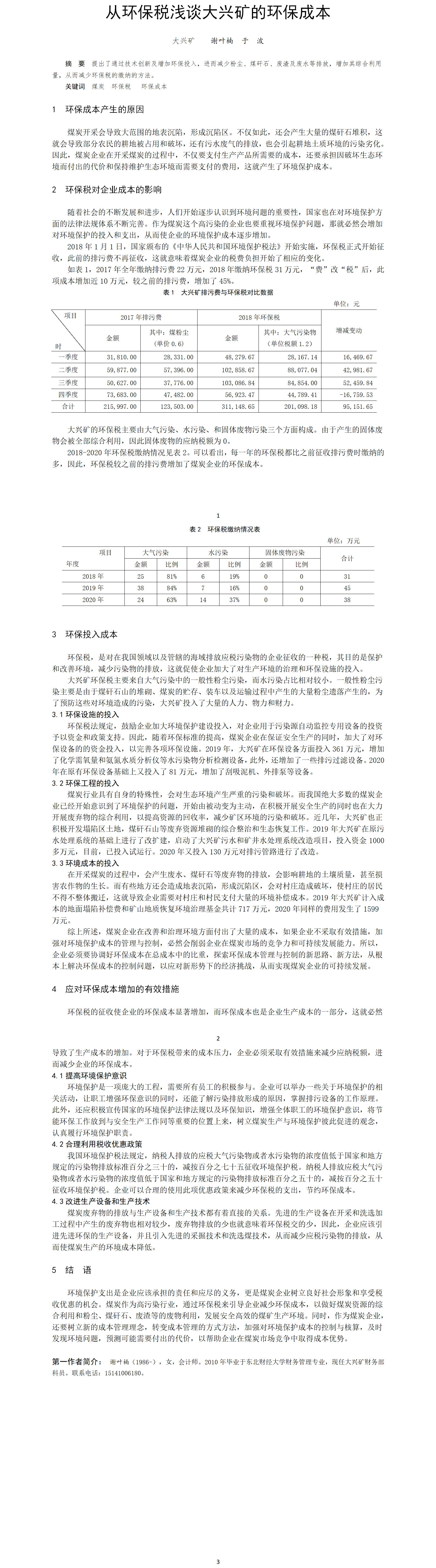 第52屆等級獎?wù)撐?--從環(huán)保稅淺談大興礦的環(huán)保成本