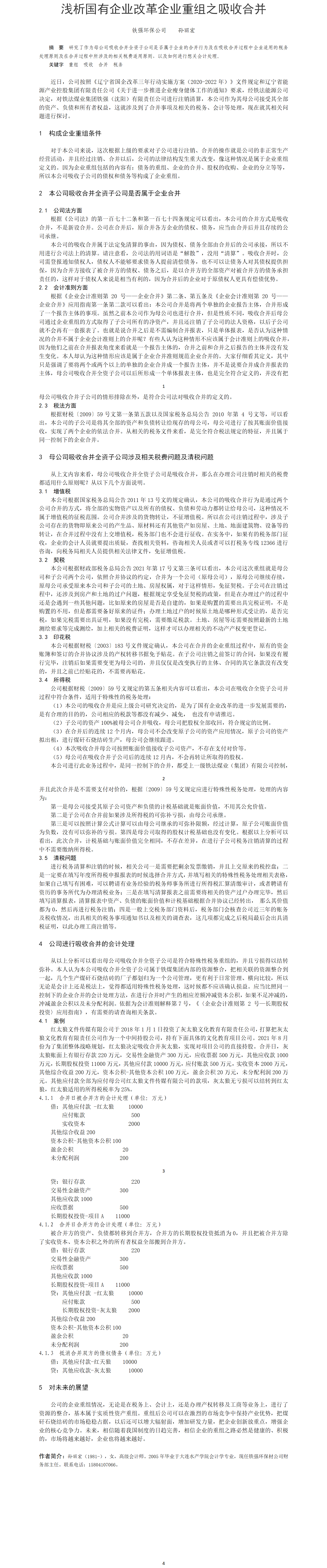 第52屆等級獎?wù)撐?--淺析國有企業(yè)改革企業(yè)重組之吸收合并