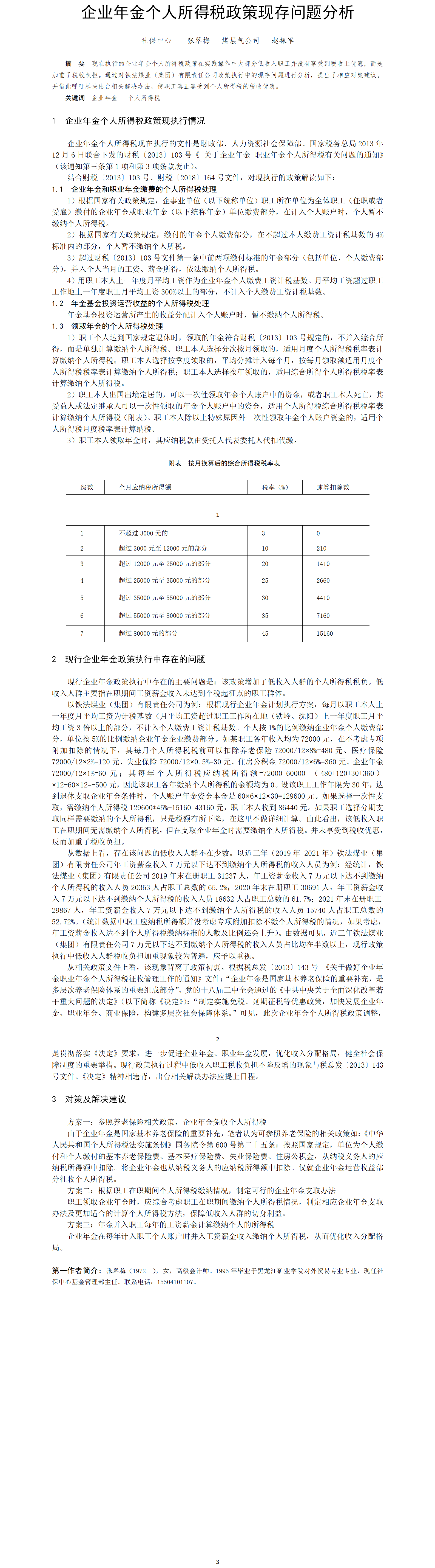 第54屆等級獎?wù)撐?--企業(yè)年金個人所得稅政策現(xiàn)存問題分析