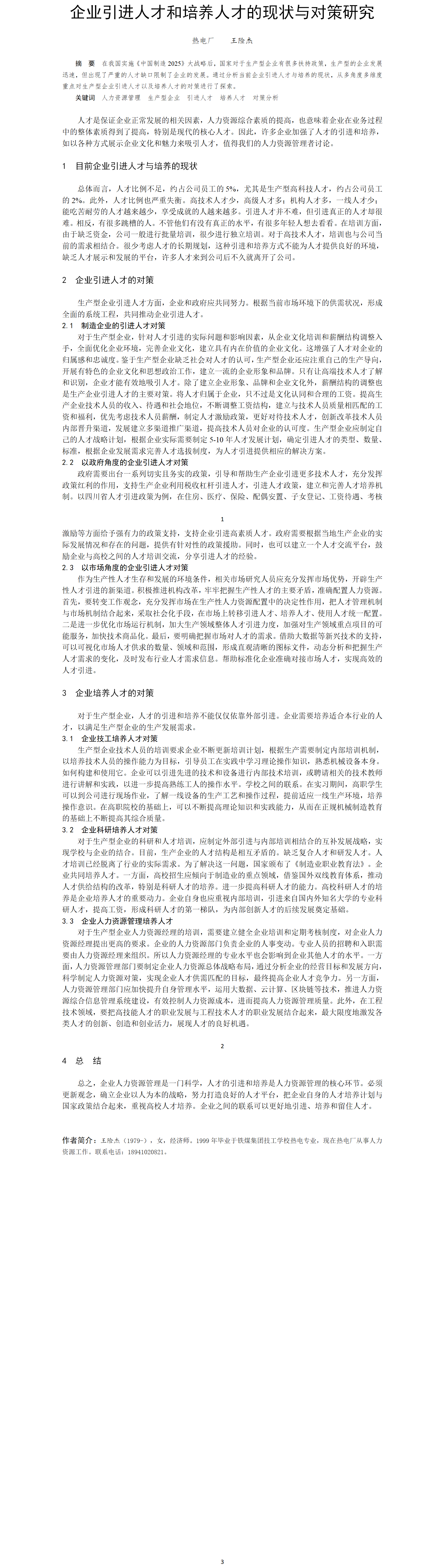 第54屆等級(jí)獎(jiǎng)?wù)撐?--企業(yè)引進(jìn)人才和培養(yǎng)人才的現(xiàn)狀與對(duì)策研究