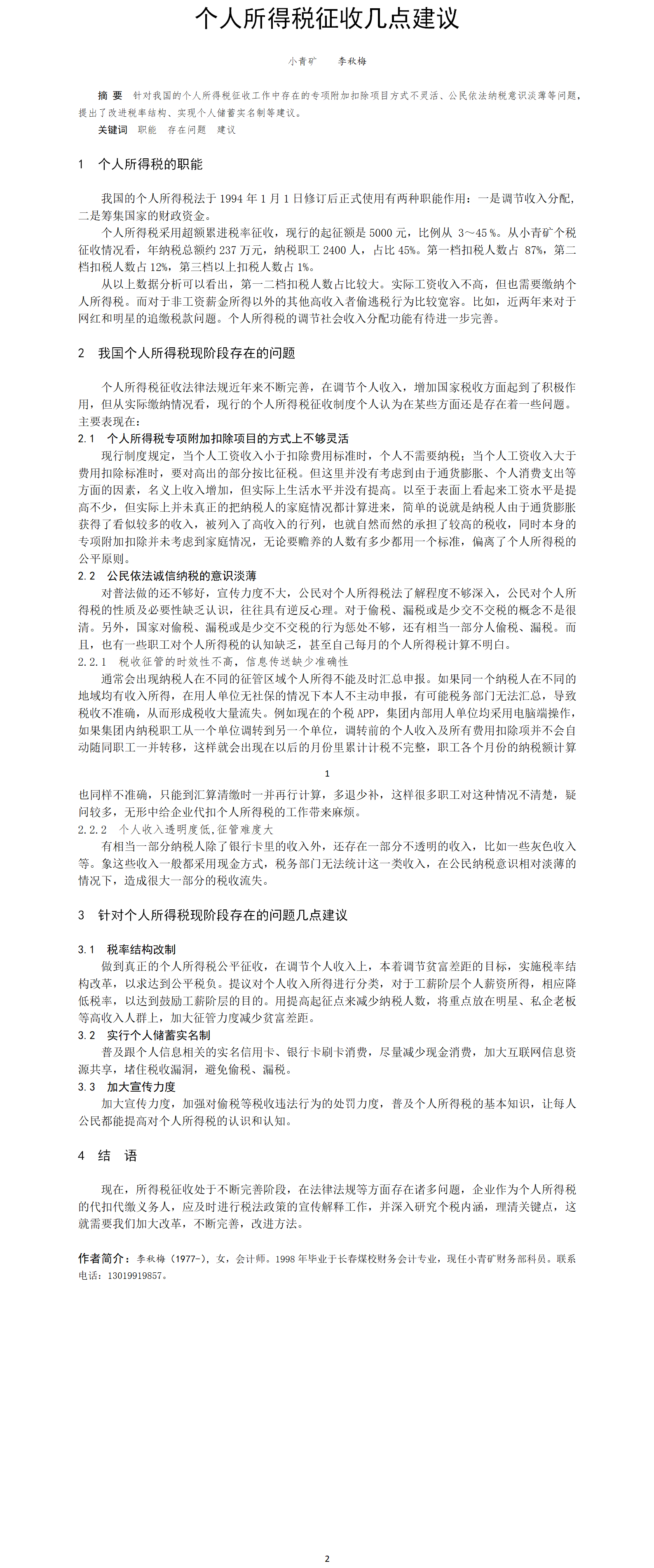 第54屆等級(jí)獎(jiǎng)?wù)撐?--個(gè)人所得稅征收幾點(diǎn)建議
