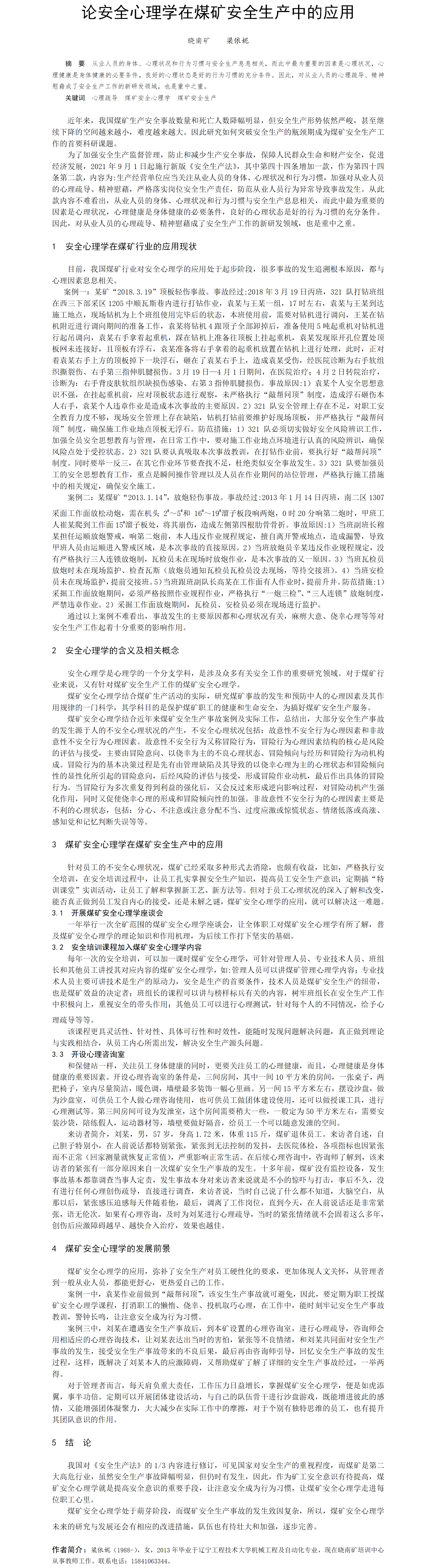 第54屆等級獎論文---論安全心理學在煤礦安全生產中的應用