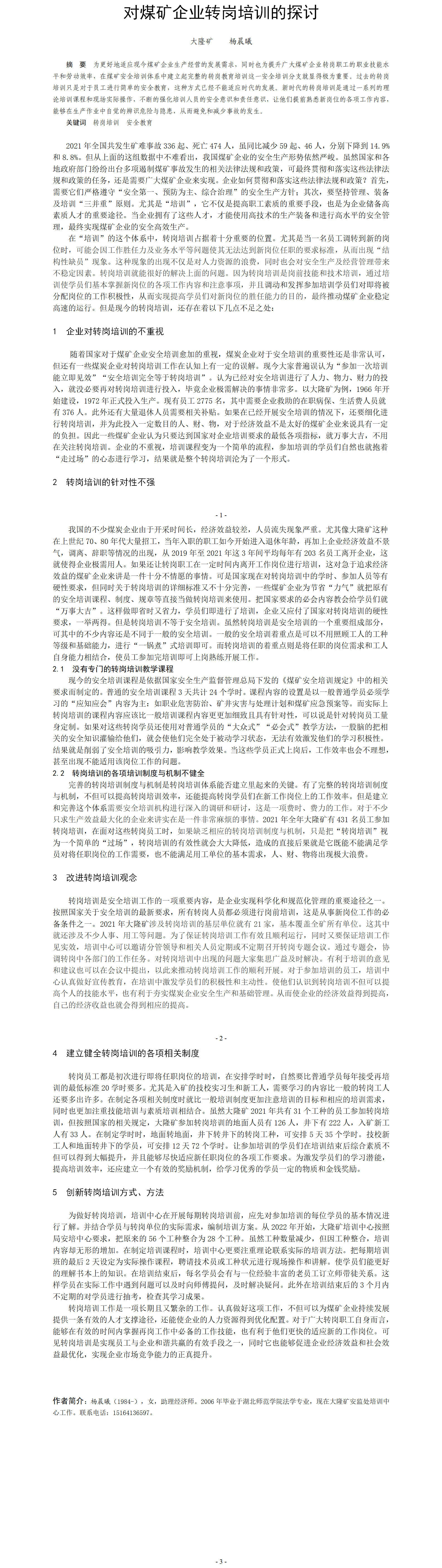 第54屆等級(jí)獎(jiǎng)?wù)撐?--對(duì)煤礦企業(yè)轉(zhuǎn)崗培訓(xùn)的探討