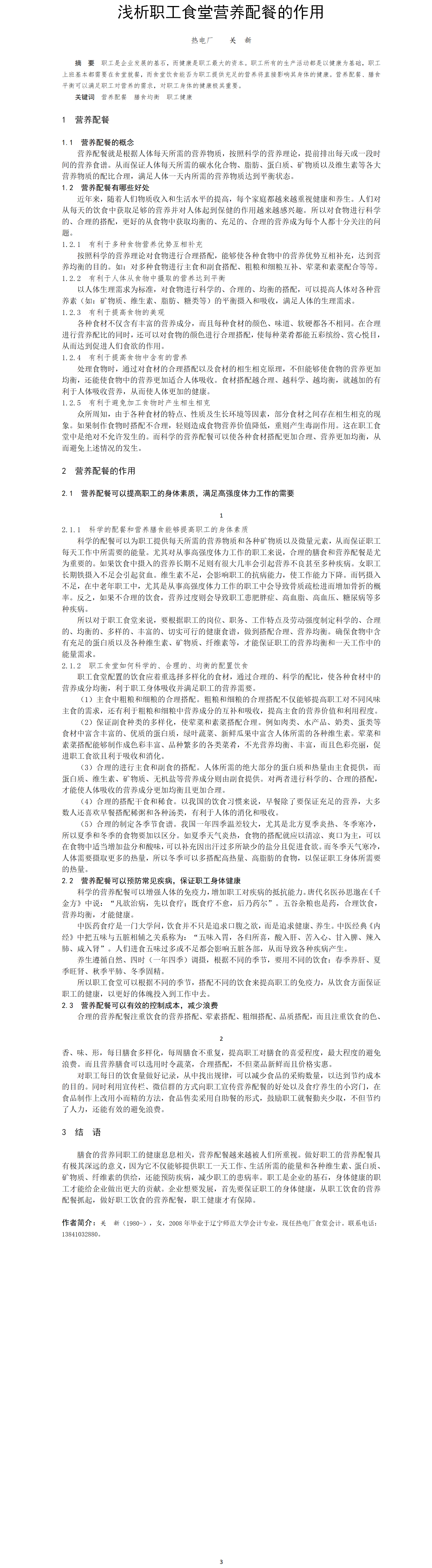 第54屆等級獎?wù)撐?--淺析職工食堂營養(yǎng)配餐的作用