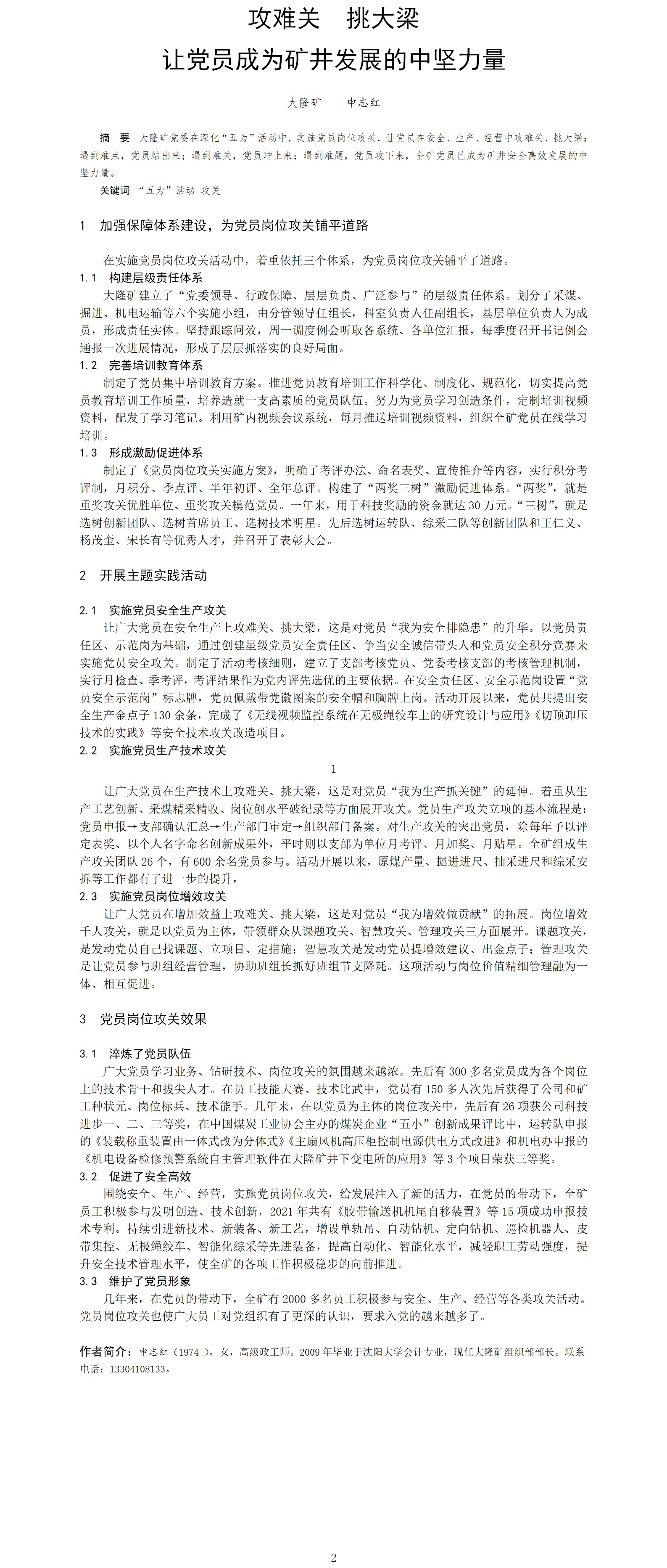 第54屆等級獎(jiǎng)?wù)撐?--攻難關(guān) 挑大梁 讓黨員成為礦井發(fā)展的中堅(jiān)力量