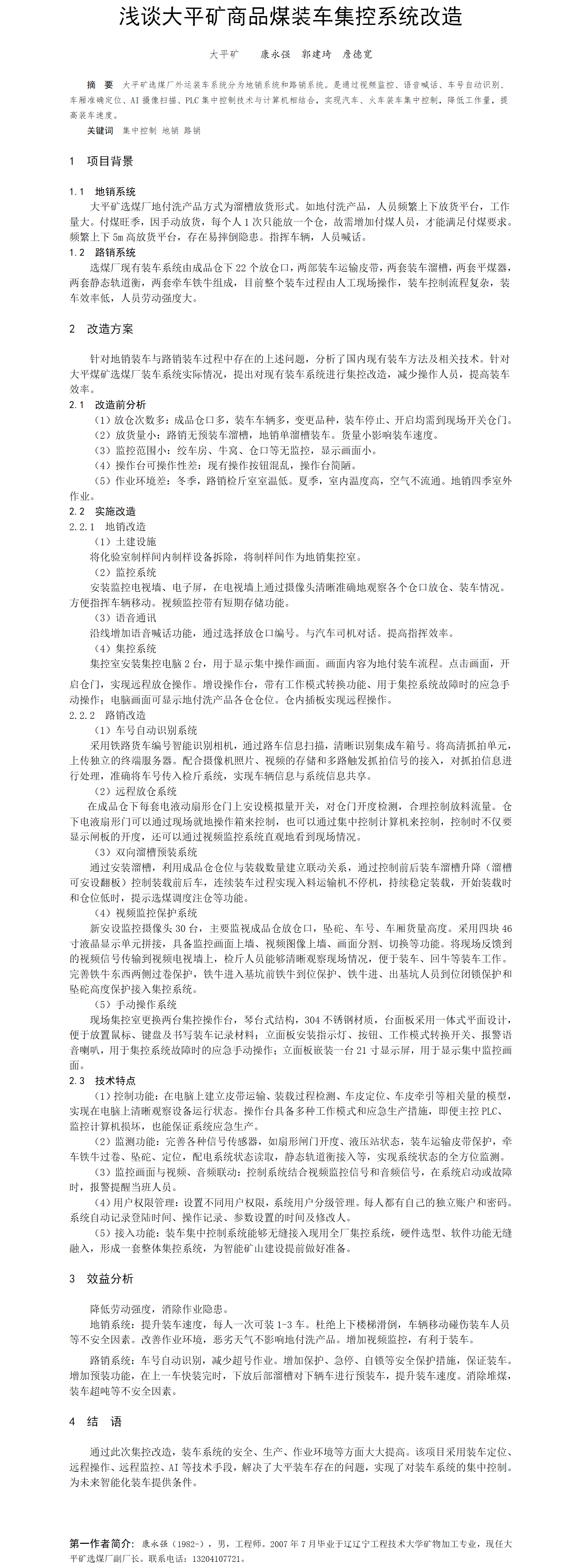第55屆等級(jí)獎(jiǎng)?wù)撐?--淺談大平礦商品煤裝車集控系統(tǒng)改造