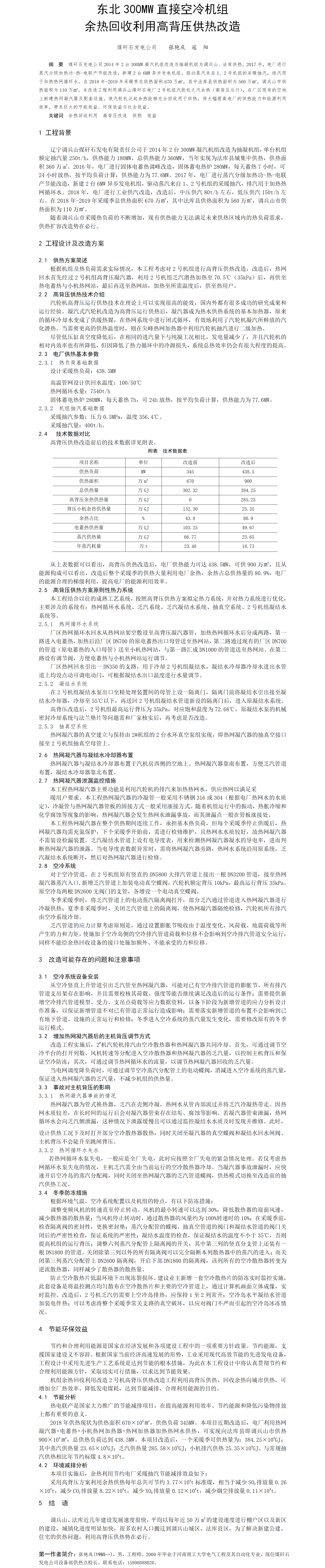 第55屆等級獎?wù)撐?--東北300MW直接空冷機(jī)組余熱回收利用高背壓供熱改造
