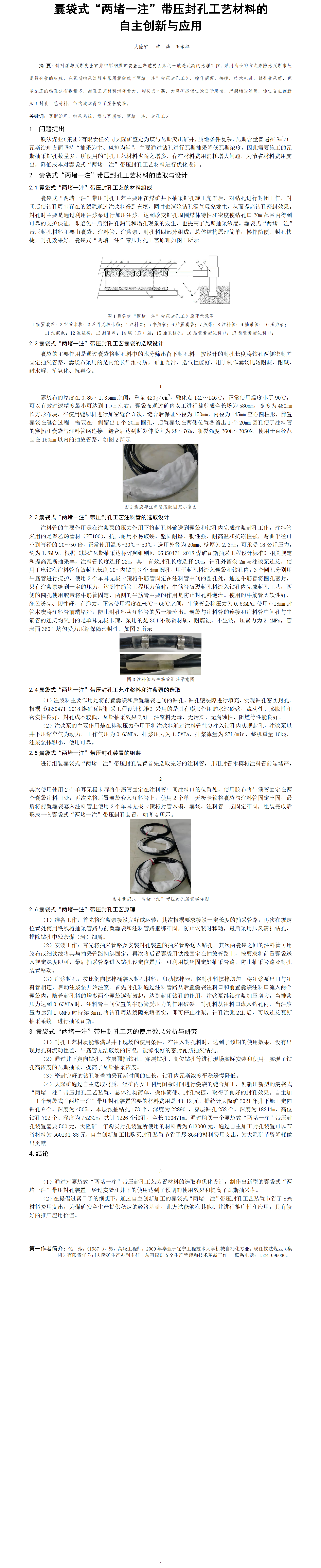第56屆等級獎論文---囊袋式“兩堵一注”帶壓封孔工藝材料的自主創(chuàng)新與應用