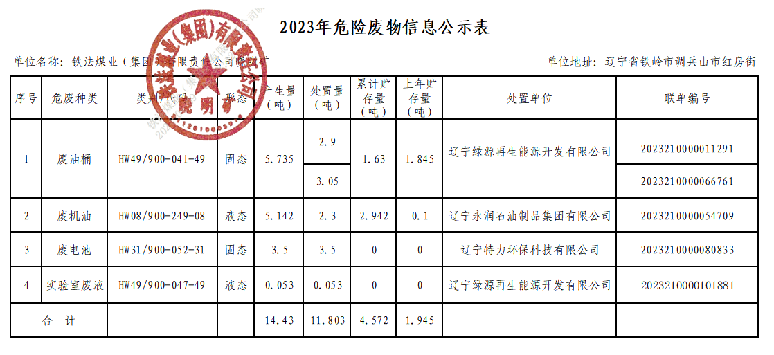 曉明礦2023年度固體廢物污染環(huán)境防治信息
