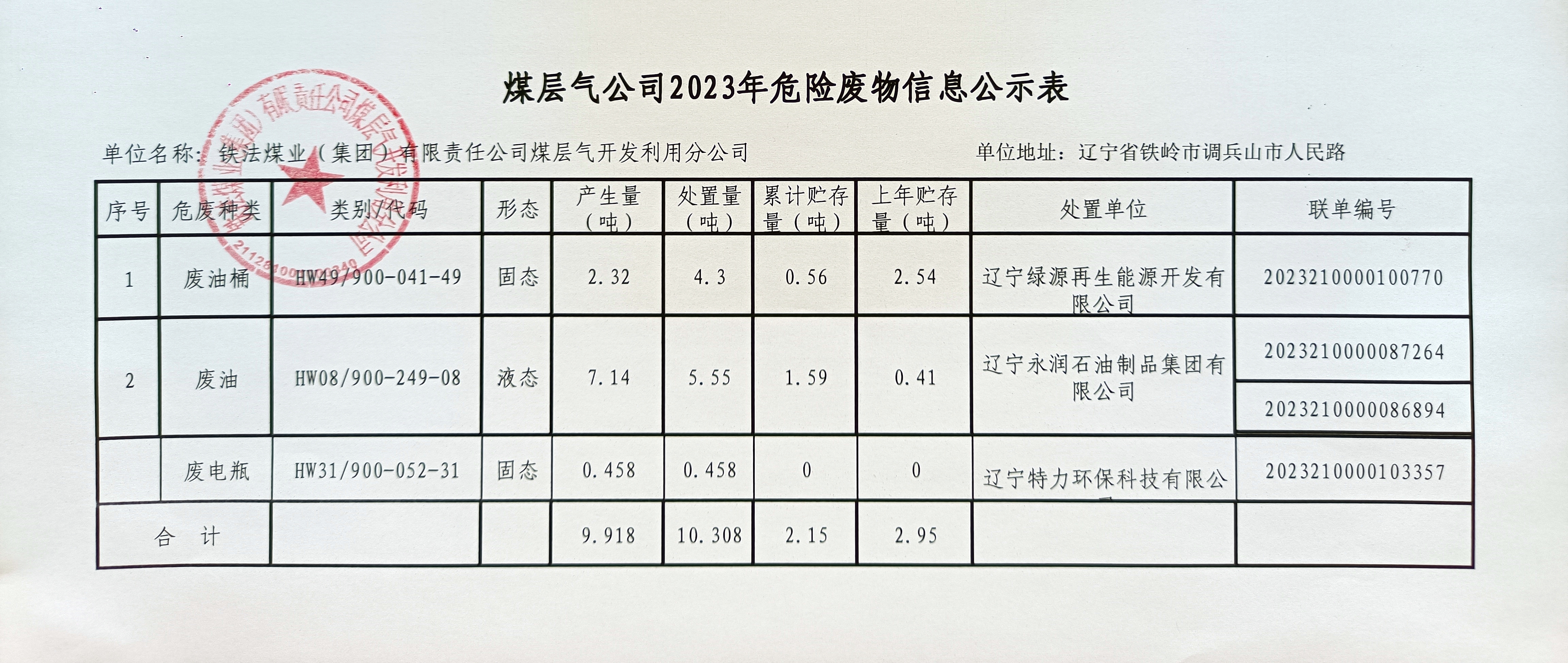 煤層氣公司2023年度固體廢物污染環(huán)境防治信息