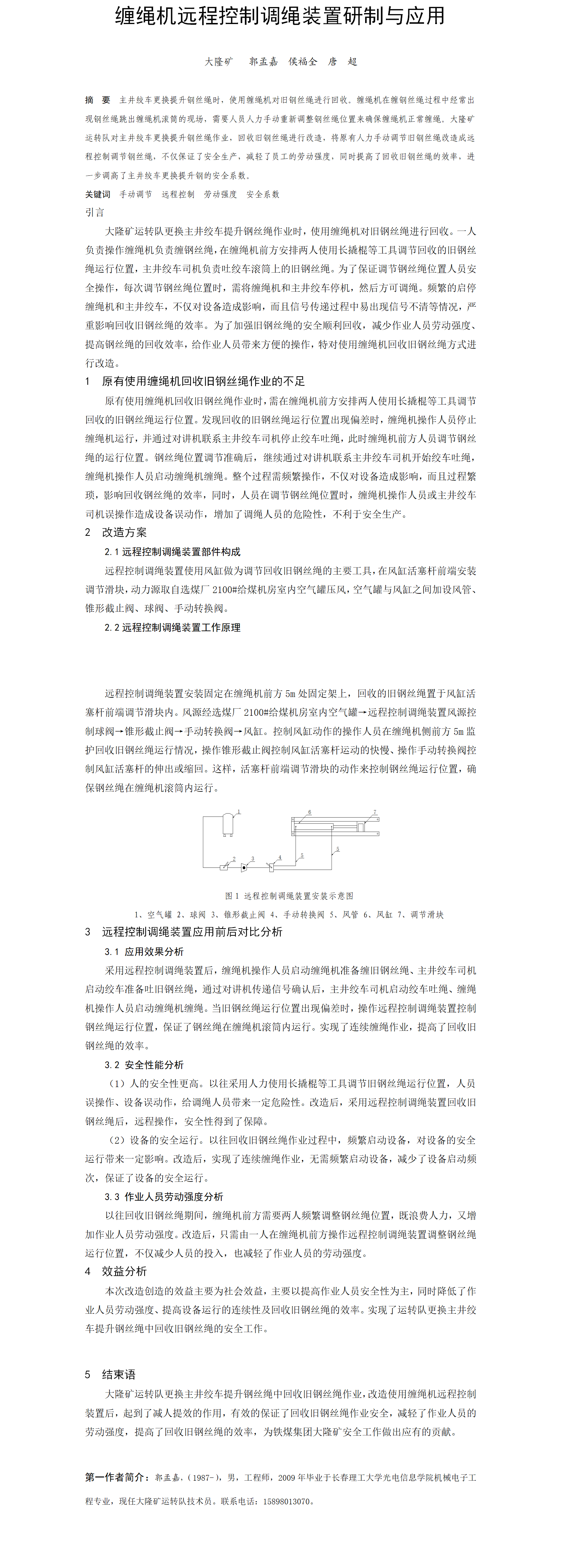 第56屆等級獎?wù)撐?--纏繩機(jī)遠(yuǎn)程控制調(diào)繩裝置研制與應(yīng)用