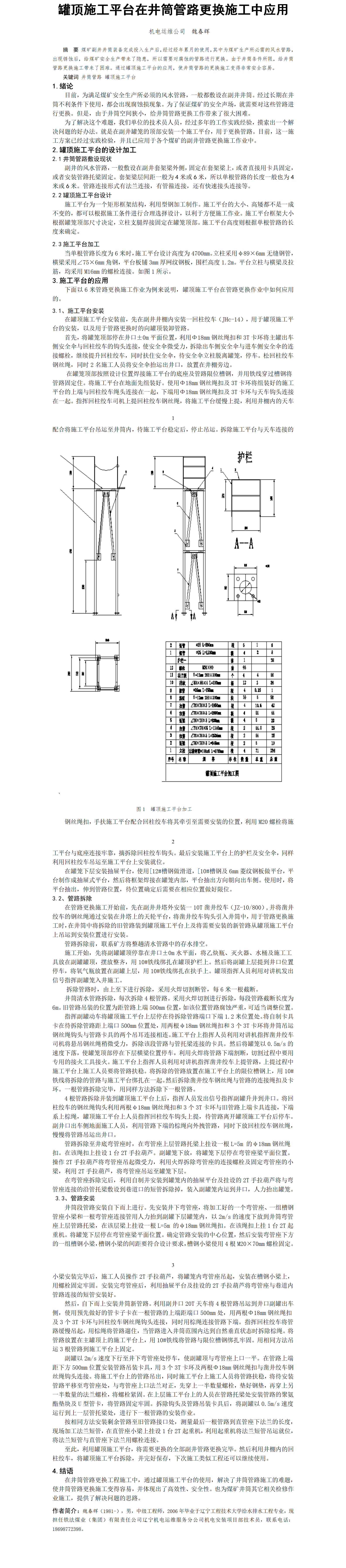 第56屆等級(jí)獎(jiǎng)?wù)撐?--罐頂施工平臺(tái)在井筒管路更換施工中的應(yīng)用