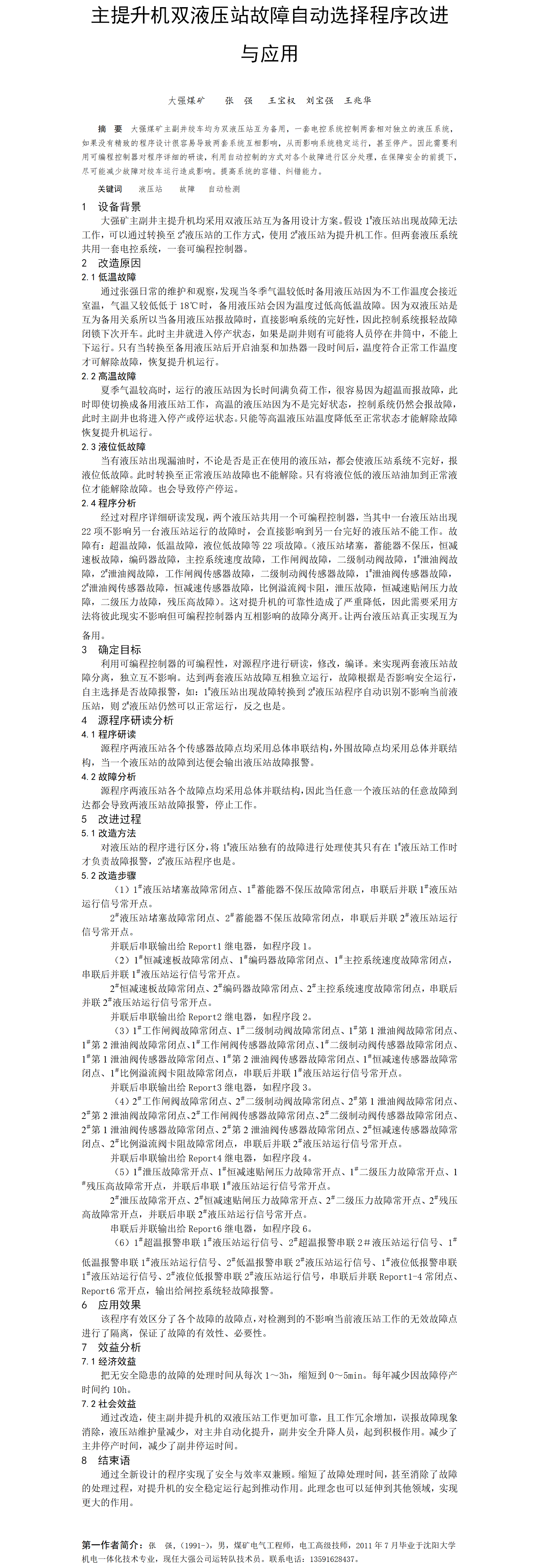 第56屆等級獎?wù)撐?--主提升機雙液壓站故障自動選擇程序改進與應(yīng)用