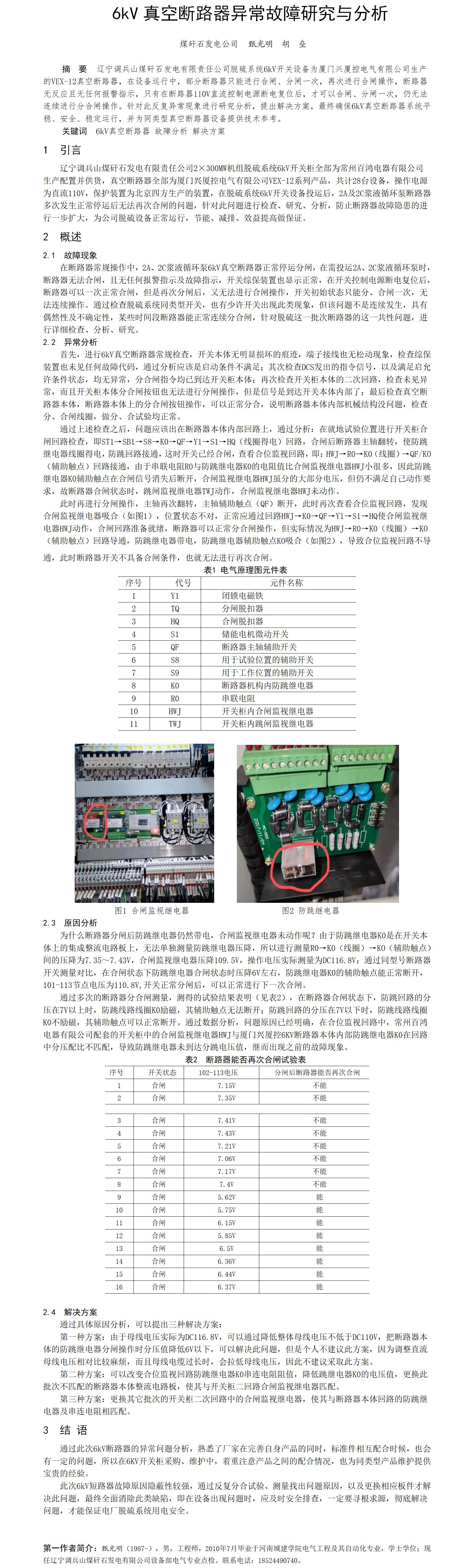 第56屆等級獎?wù)撐?--6KV真空斷路器異常故障研究與分析