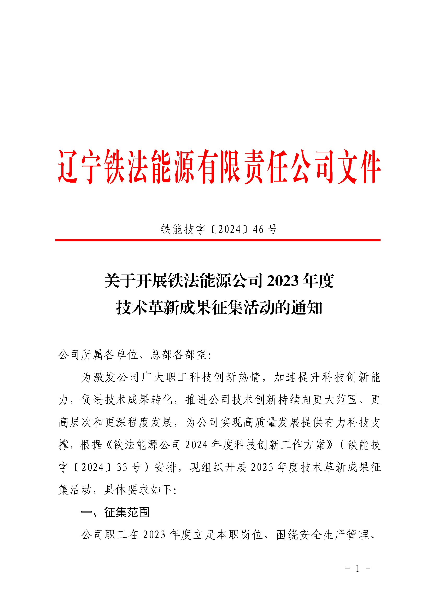 關于開展鐵法能源公司2023年度技術革新成果征集活動的通知