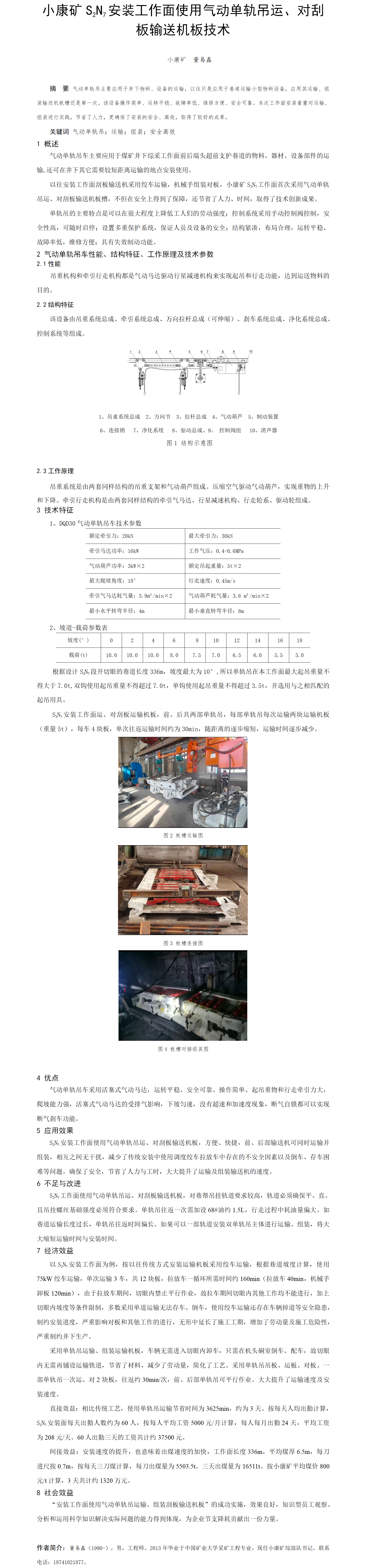 第57屆等級獎?wù)撐?--小康礦S2N7安裝工作面使用氣動單軌吊運、對刮板輸送機板技術(shù)
