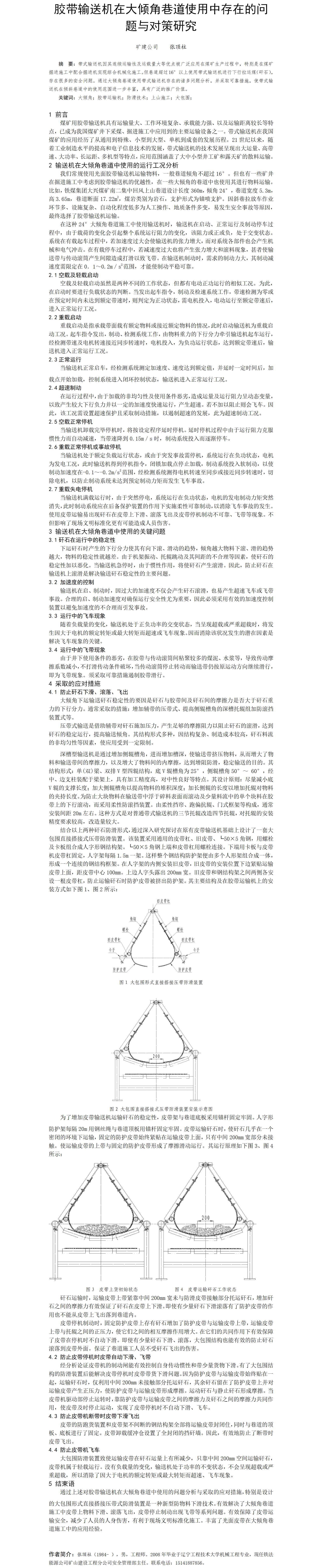 第57屆等級獎(jiǎng)?wù)撐?--膠帶輸送機(jī)在大傾角巷道使用中存在的問題與對策研究