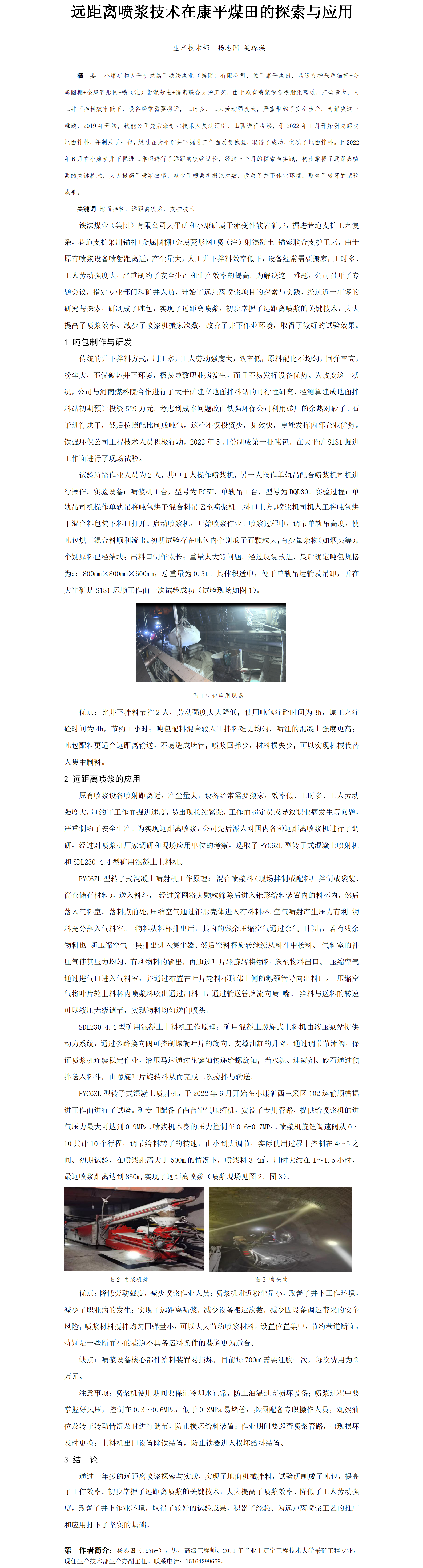 第57屆等級獎(jiǎng)?wù)撐?--遠(yuǎn)距離噴漿技術(shù)在康平煤田的探索與應(yīng)用