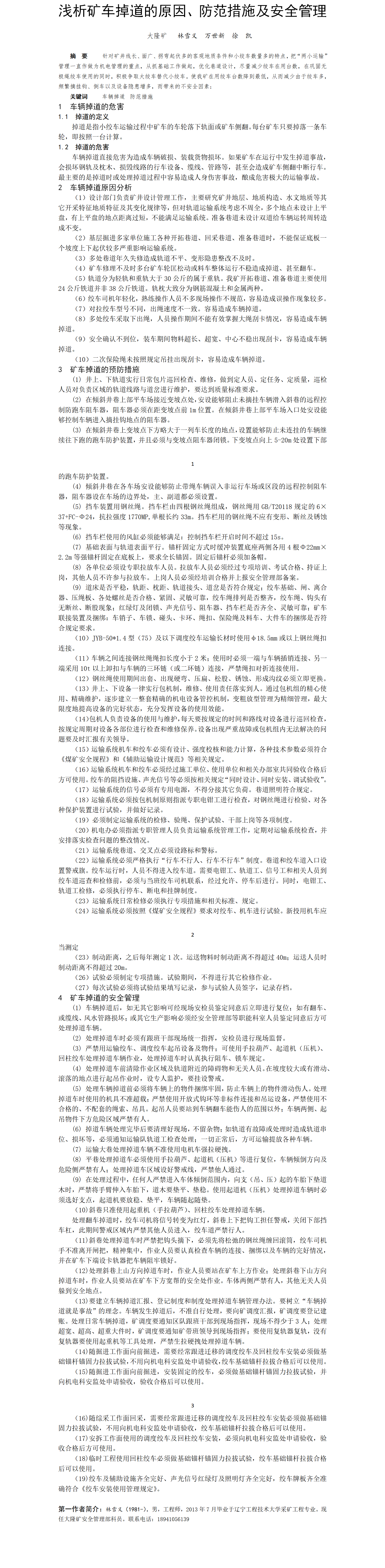 第58屆等級獎論文---淺析礦車掉道的原因、防范措施及安全管理
