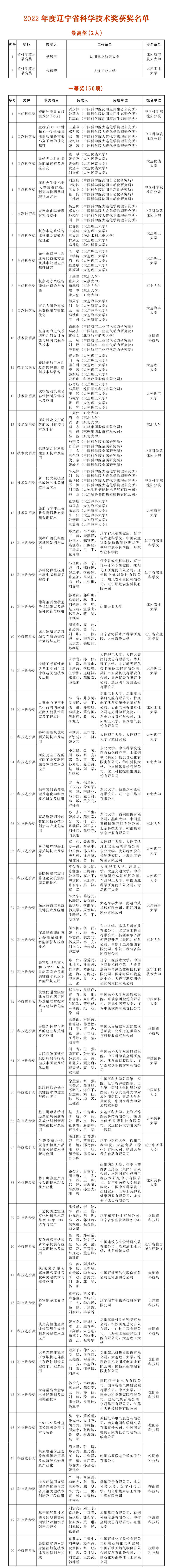 2022年度遼寧省科學技術獎獲獎名單