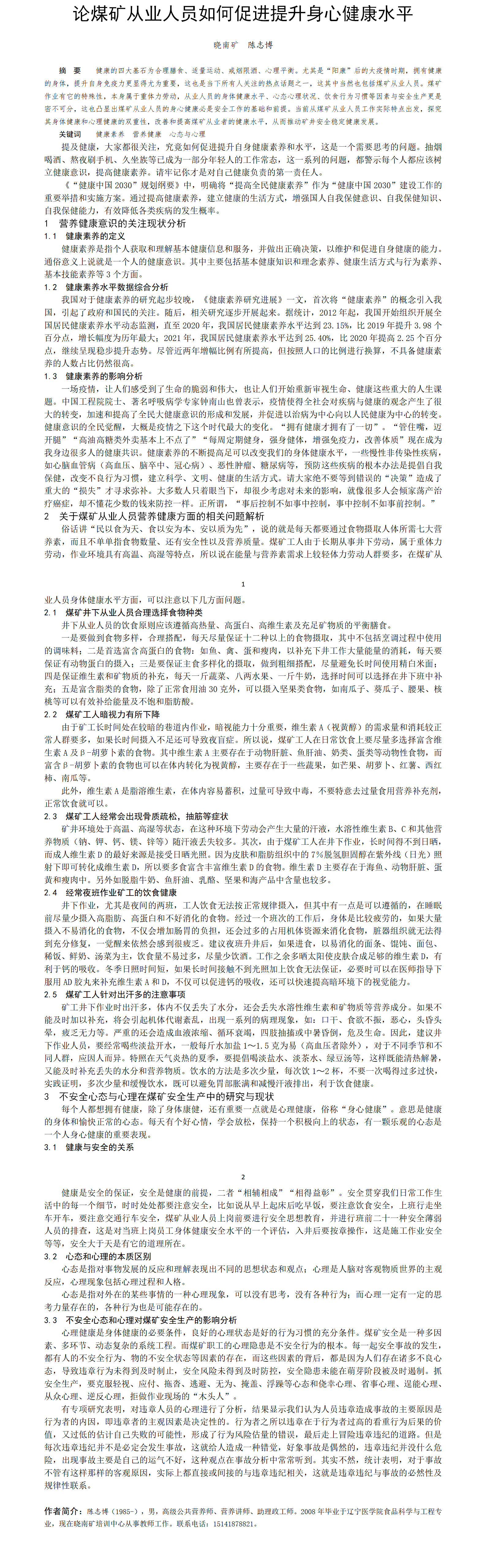第58屆等級獎?wù)撐?--論煤礦從業(yè)人員如何促進(jìn)提升身心健康水平