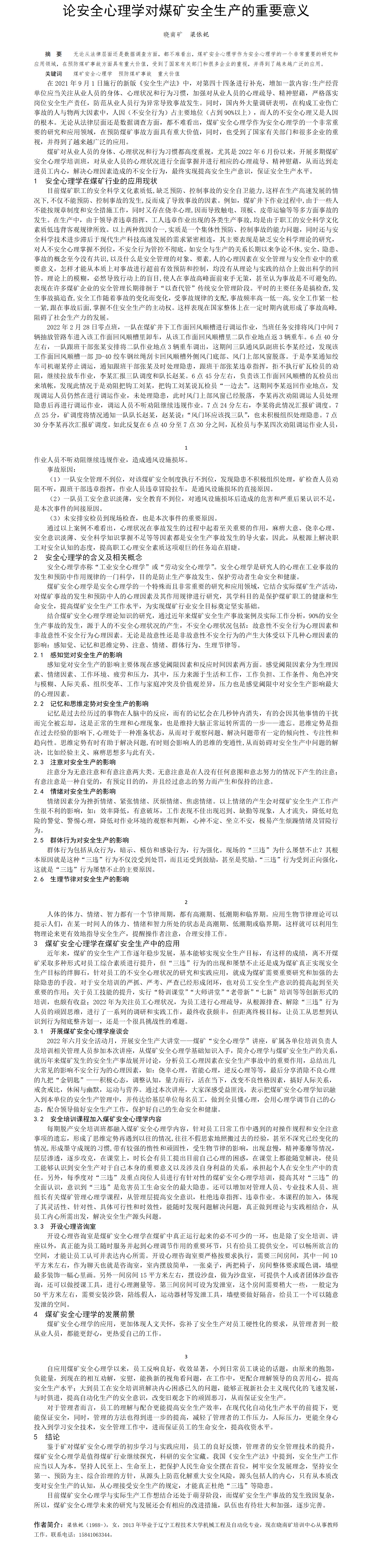 第58屆等級獎?wù)撐?--論安全心理學(xué)對煤礦安全生產(chǎn)的重要意義