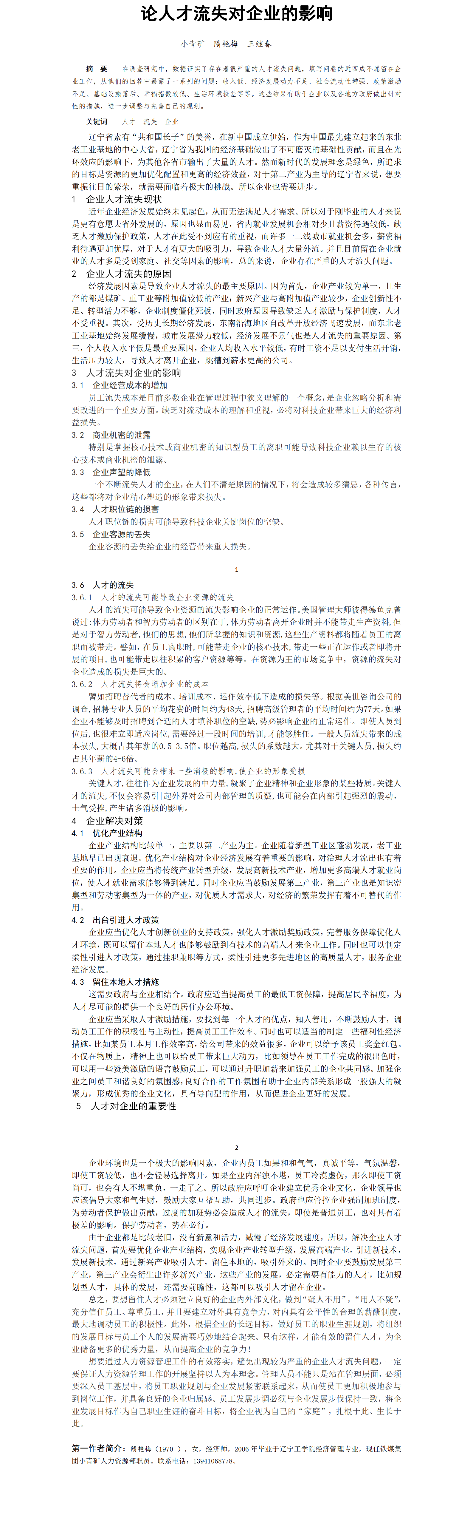 第58屆等級獎(jiǎng)?wù)撐?--論人才流失對企業(yè)的影響