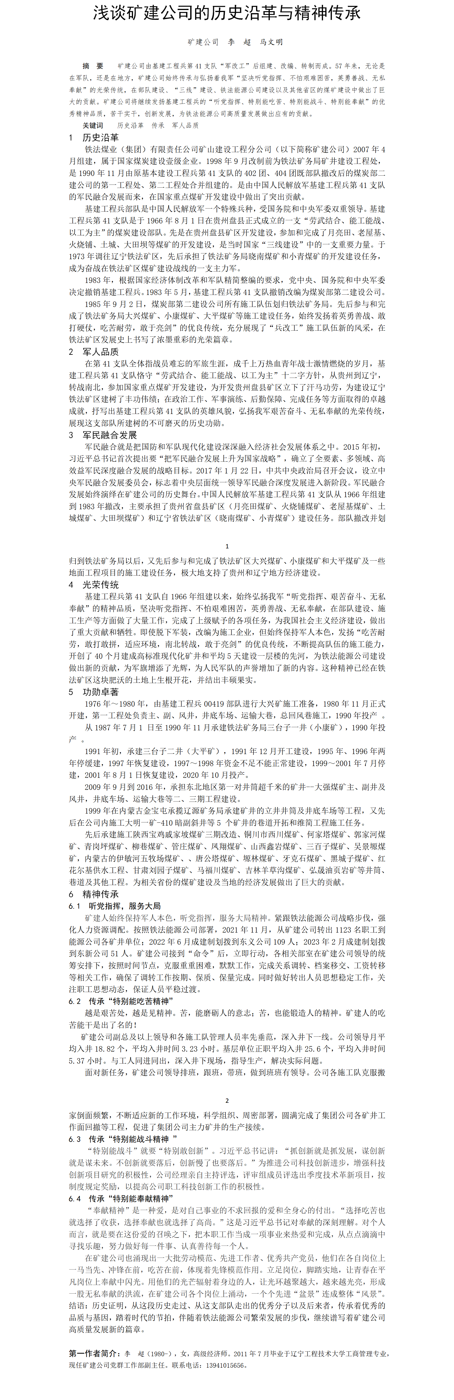 第58屆等級(jí)獎(jiǎng)?wù)撐?--淺談礦建公司的歷史沿革與精神傳承