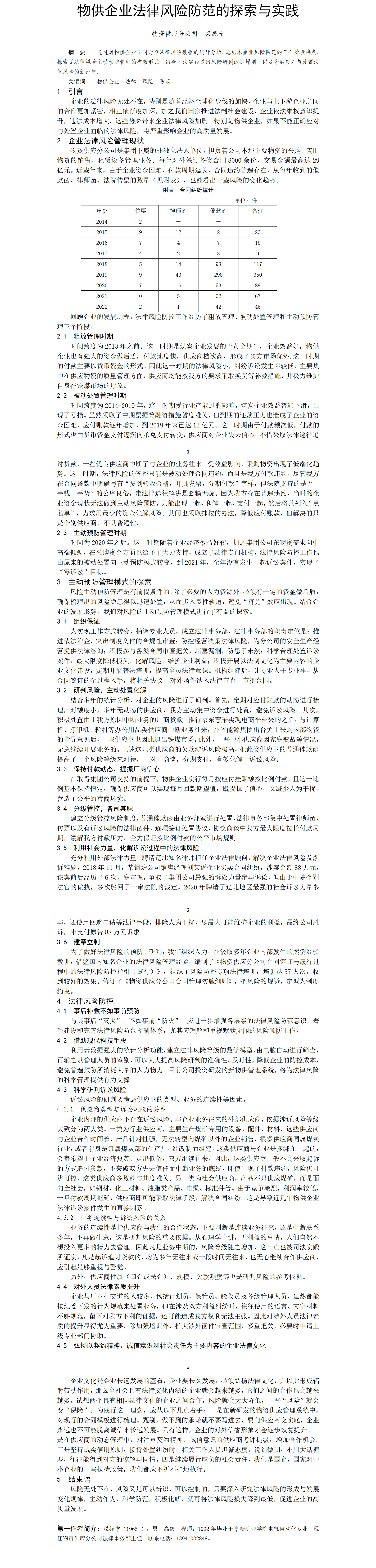 第58屆等級獎?wù)撐?--物供企業(yè)法律風(fēng)險防范的探索與實(shí)踐