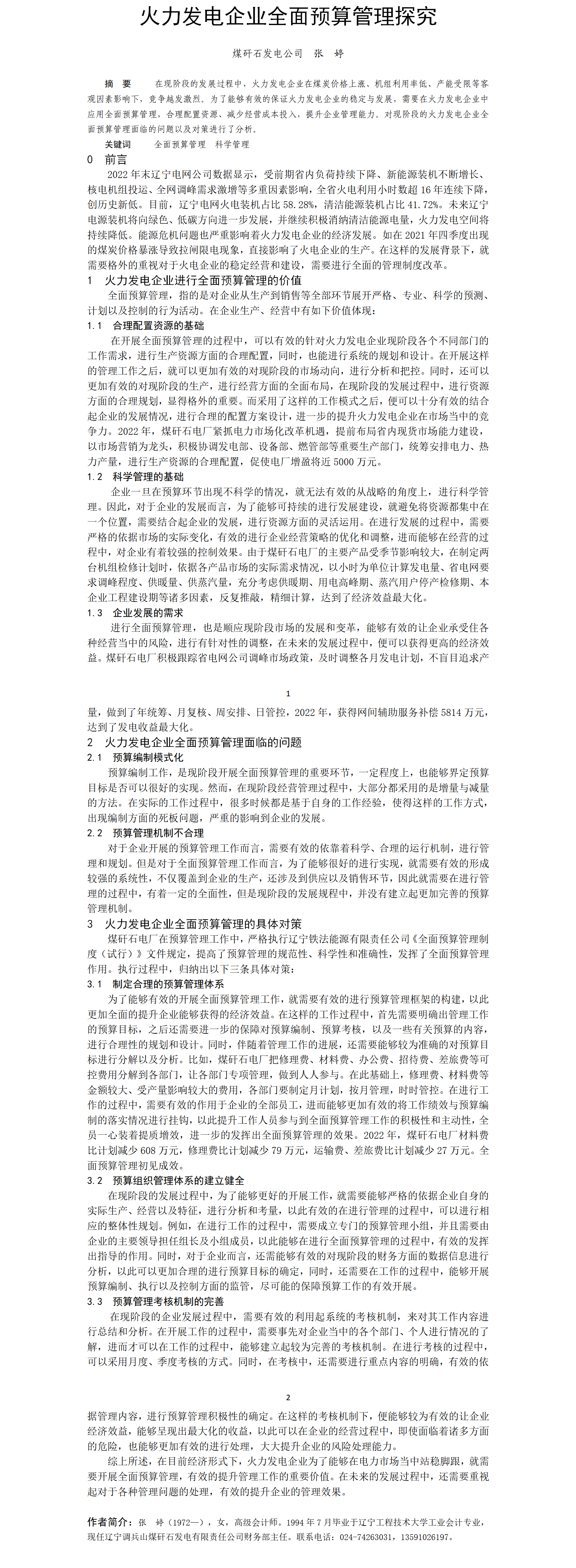 第58屆等級(jí)獎(jiǎng)?wù)撐?--火力發(fā)電企業(yè)全面預(yù)算管理探究