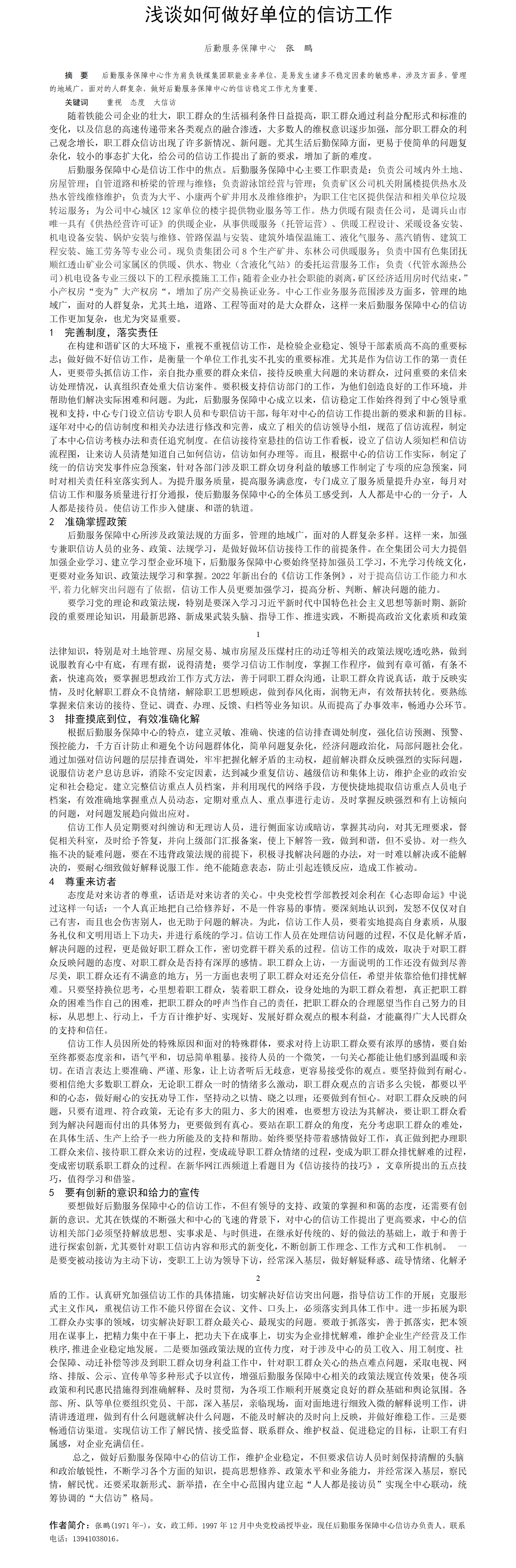 第58屆等級獎?wù)撐?--淺談如何做好單位的信訪工作