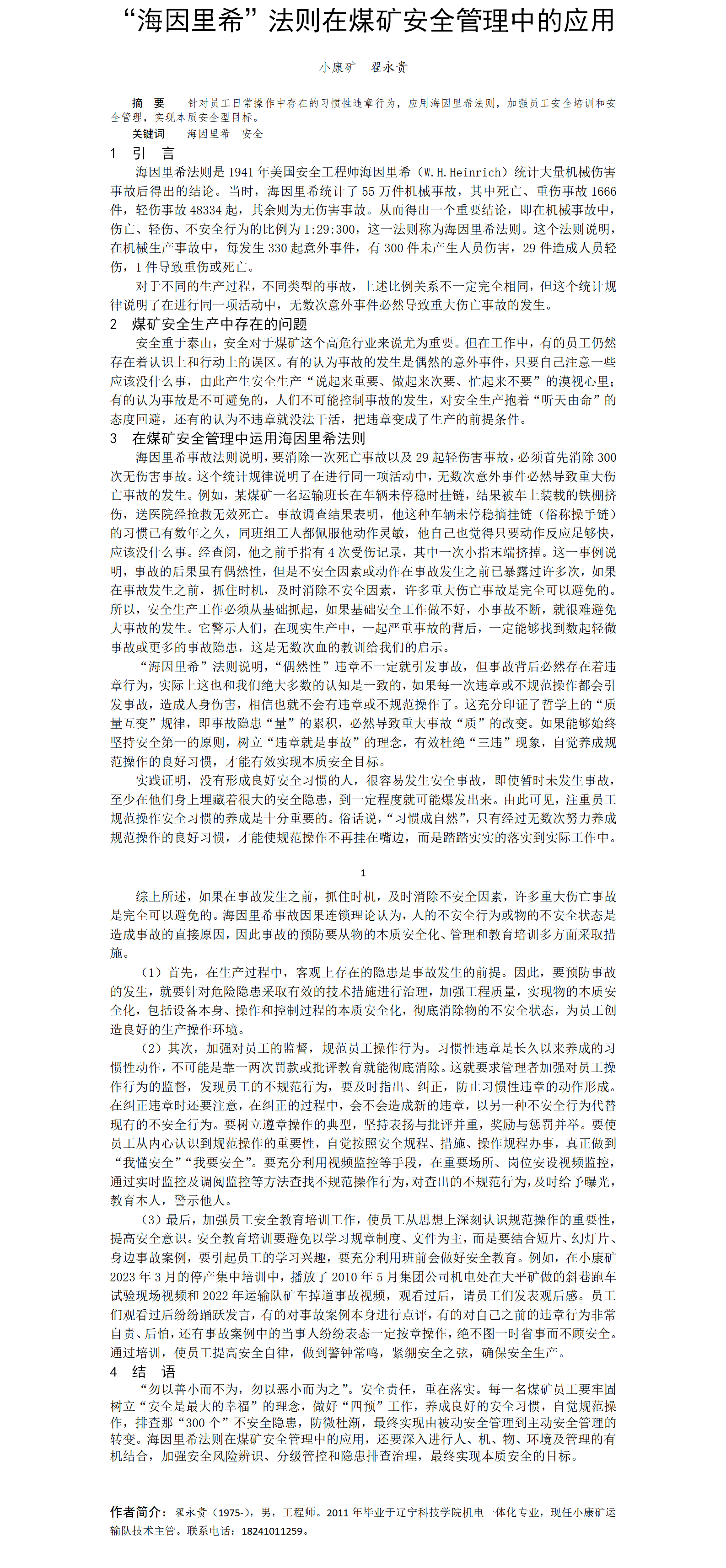 第58屆等級獎?wù)撐?--“海因里希”法則在煤礦安全管理中的應(yīng)用