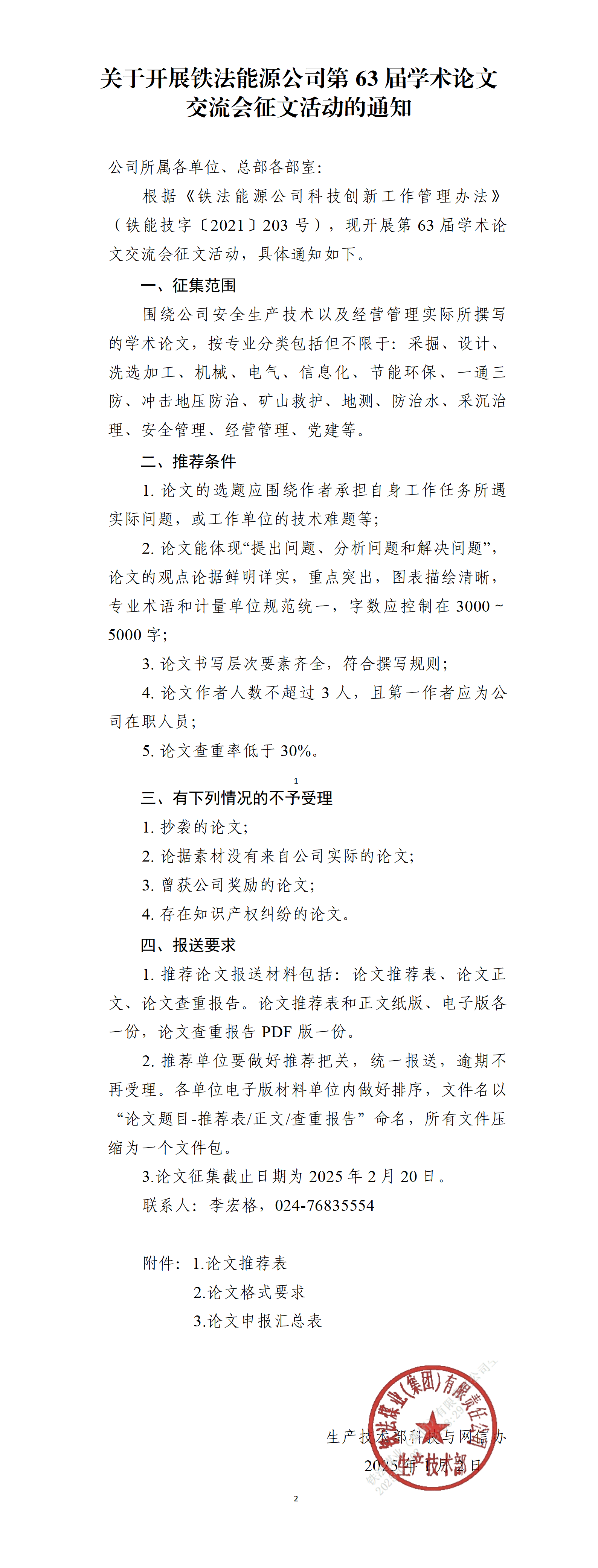 關(guān)于開(kāi)展鐵法能源公司第63屆學(xué)術(shù)論文交流會(huì)征文活動(dòng)的通知