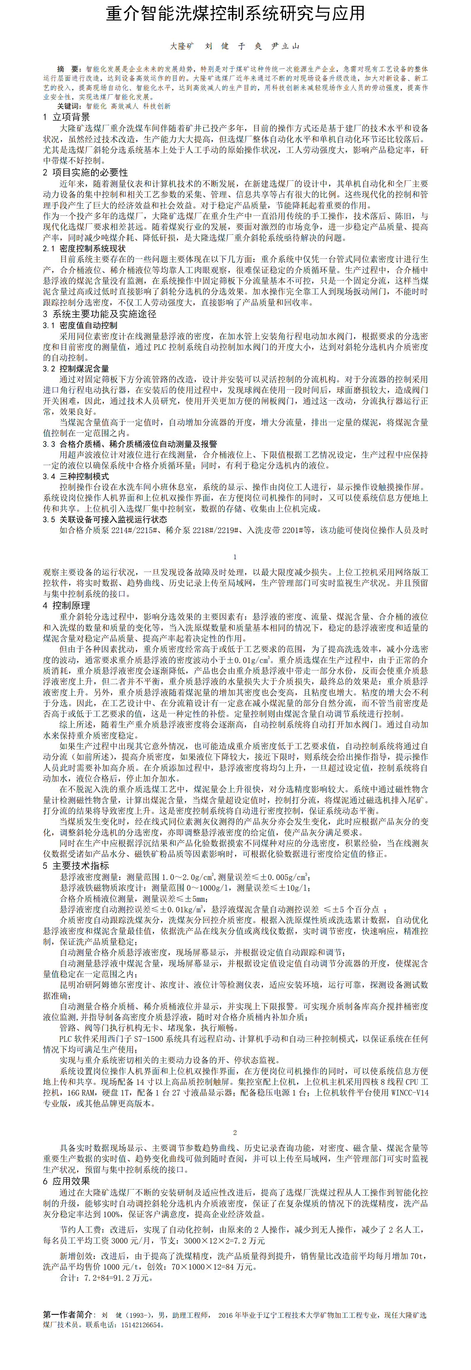 第59屆等級(jí)獎(jiǎng)?wù)撐?--重介智能洗煤控制系統(tǒng)研究與應(yīng)用