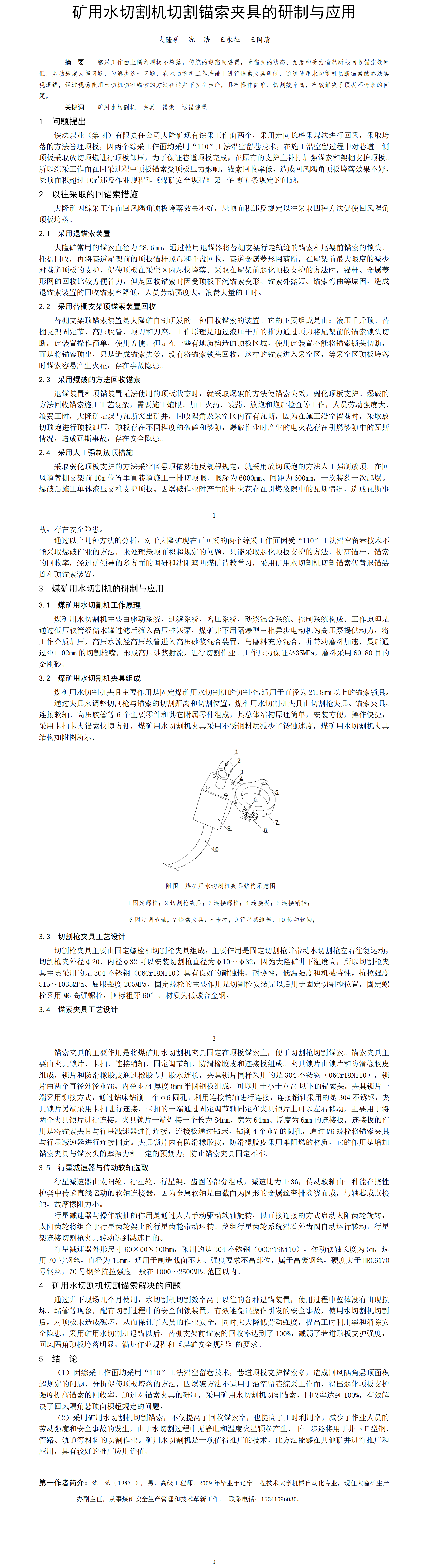 第60屆等級獎?wù)撐?--礦用水切割機切割錨索夾具的研制與應(yīng)用